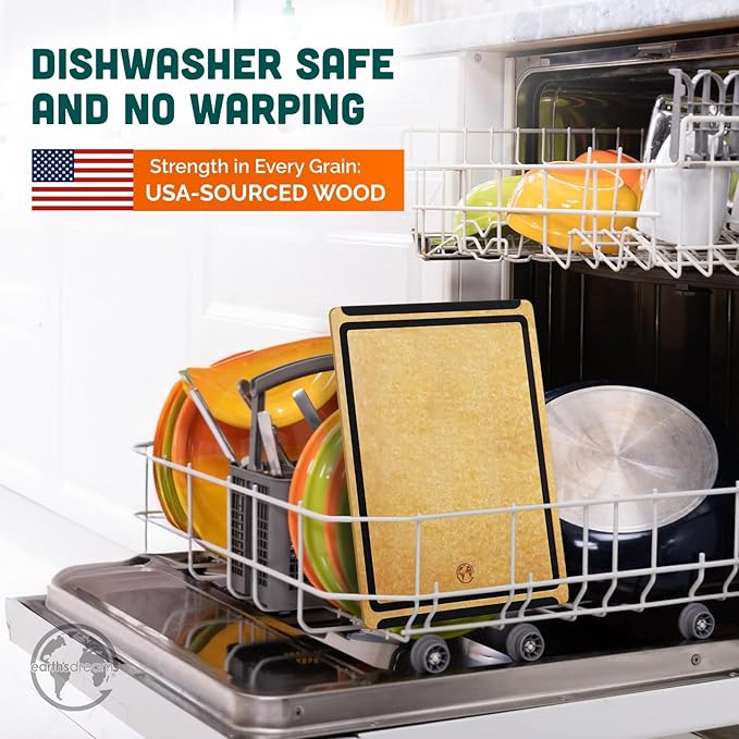 • WOOD COMPOSITE CUTTING BOARDS - This set is the best cutting boards for kitchen set you can get! Made from high-temperature-pressed paper composite material from wood fiber, they offer durability & efficiency without water absorption. This helps prevent cracks, splinters, peels, & even odors over time. Lightweight Dishwasher Safe Alternative to Bamboo
