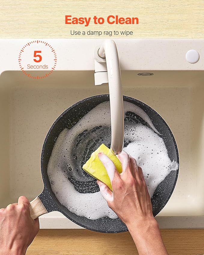 • Premium Material: Made with a Maifan stone non-stick coating, this cookware set ensures easy food release and effortless cleaning. The interior withstands temperatures up to 380°C, making it reliable for daily use. The cookware does not include lead, cadmium, and PFOA. Cook with less oil for a healthier meal experience