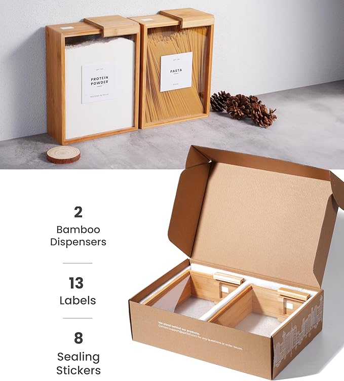 • Versatile Kitchen Organizers and Storage: Ideal for organizing cereals, rice, flour, and snacks with this 2L capacity bamboo food dispenser.