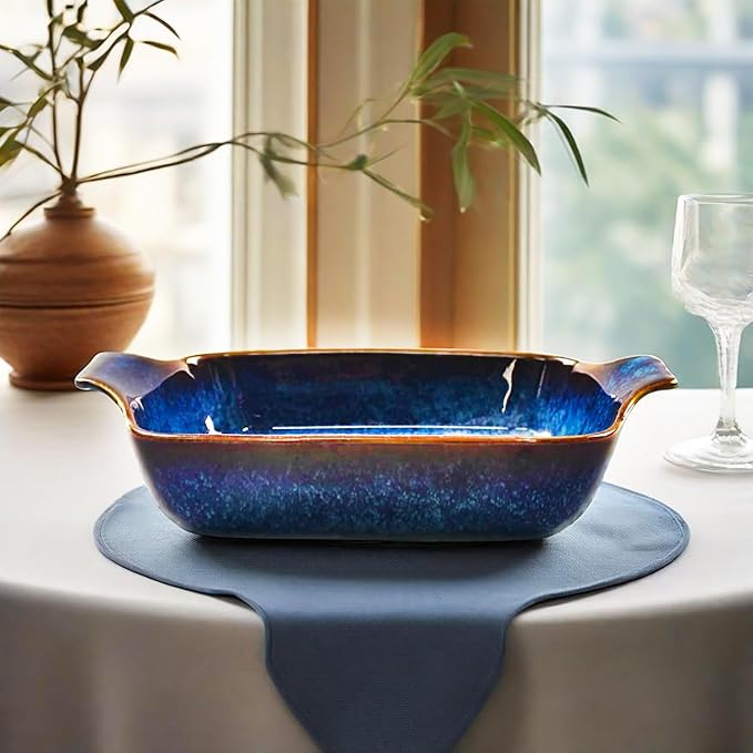 • Traditional Design: Add a rustic flair to your dinner table. Crafted from durable, odor and stain resistant ceramic in glossy Starry Blue reactive glaze. Suitable for one person to make baked dishes with more flavors