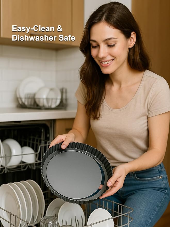 • 【Removable Bottom for Easy Demolding】 The pans come with a detachable bottom, which is convenient for demolding and makes the finished product more complete and beautiful. The non-stick coating and dishwasher-safe feature also ensures that cleaning up is a breeze.
