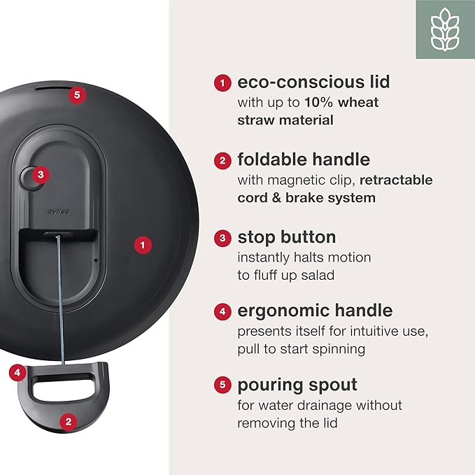 • Sustainable & Compact Salad Dryer: The salad spinner lid is made from sustainable wheat straw material, which reduces plastic use; this fruit cleaning bowl is dishwasher friendly