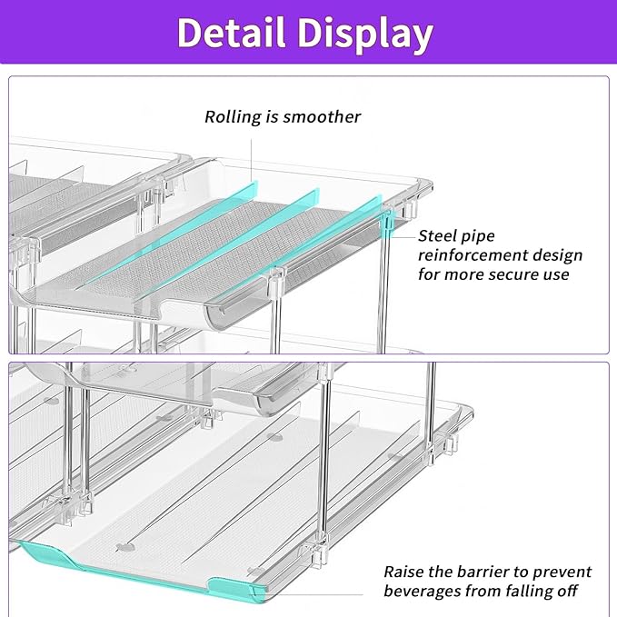 • Automatic Sliding Rail Design – This canned goods organizer for pantry features an automatic sliding rail system that lets cans slide forward smoothly for easy access