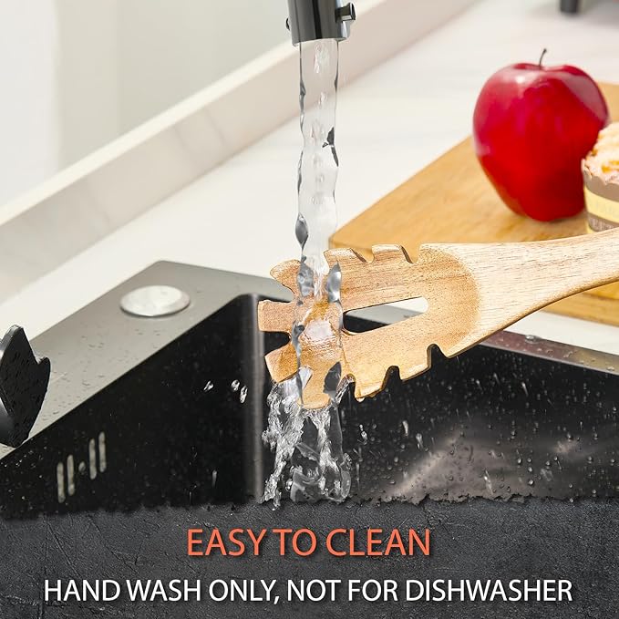 • Easy to Clean: The wooden kitchen utensil set are designed with smooth surfaces, just simply hand wash with water, then air dry to maintain their natural beauty and longevity. If the cooking utensils set are stained with food, put them in the water for a while first