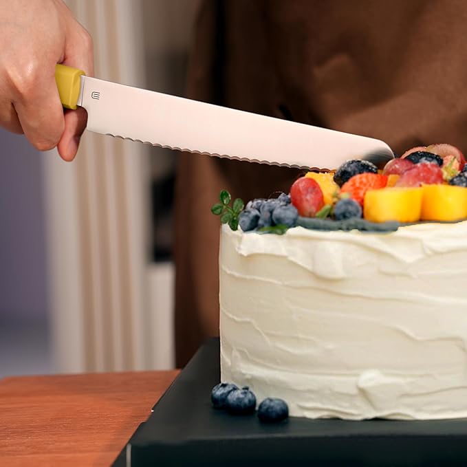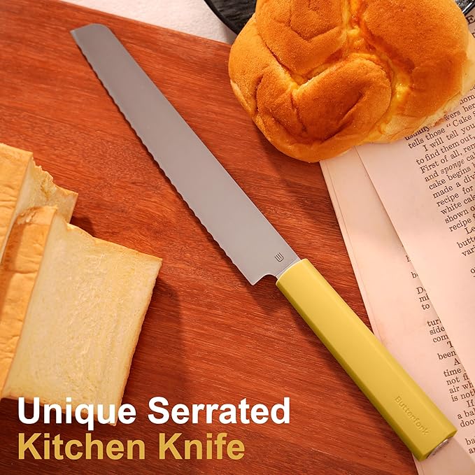• 【Precise Cutting】- Double-sided irregular wavy blade design effortlessly penetrates hard, crusty bread without crushing or tearing. The professional serrated knife is finely polished to maintain long-lasting sharpness, reduce cutting force, and make meal prep easier.