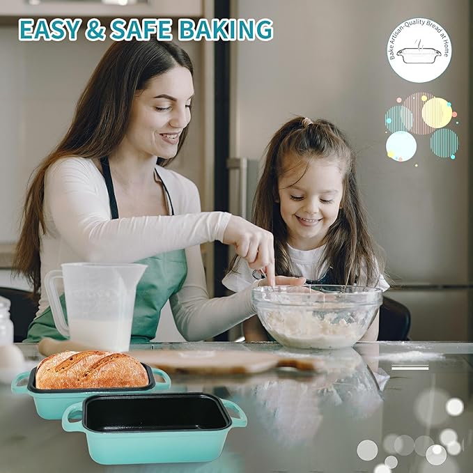 • 【Easy to Clean and Maintain】: Enameled cast iron bread oven is perfect for baking beginners, the bread pan has a smooth surface to reduce sticking and food residue, and is coated with a natural vegetable oil coating to minimize sticking. Although the bread pan is dishwasher safe, it is recommended to hand wash with warm soapy water and a nylon brush. Metal tools may leave scratches. Always use oven mitts or oven gloves when moving cast iron cookware away from heat. Very easy to clean and maintain
