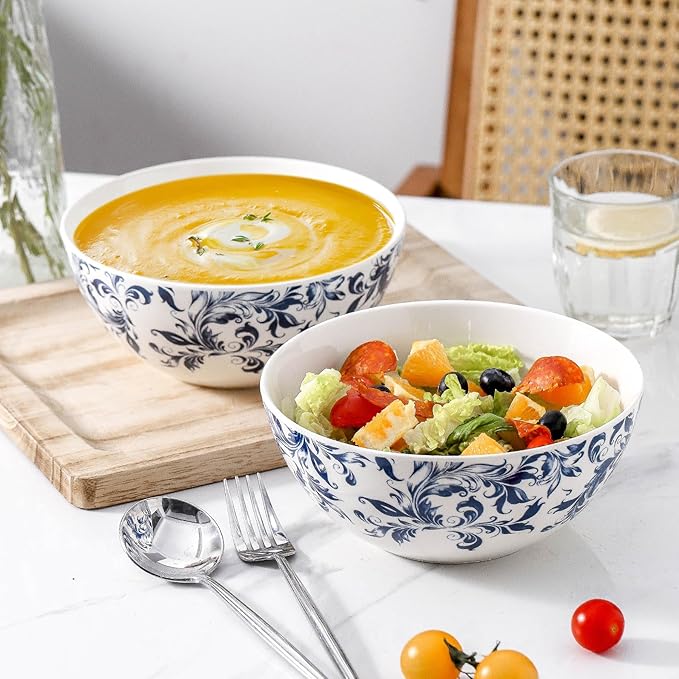 • Exquisite Floral Design: This ramen bowl features a classic flower pattern to catch your eyes and enhance the aesthetic appeal of your kitchen. The white and blue floral design on the dinner bowls not only adds color and style to your food and table,serving bowls for party not only whet the appetites of your family and guests but also create a delightful dining experience.