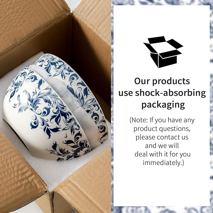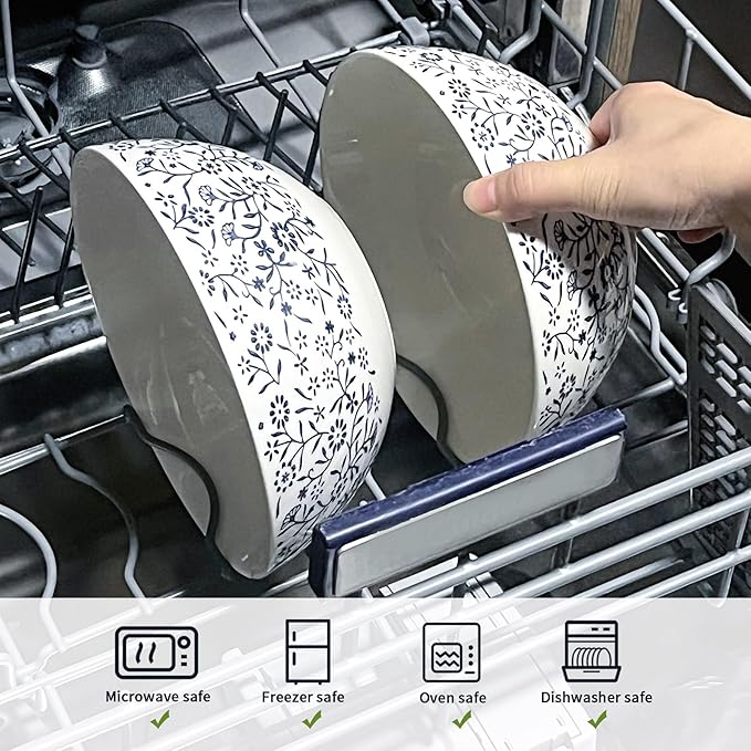 • Exquisite Floral Design: This ramen bowl features a classic flower pattern to catch your eyes and enhance the aesthetic appeal of your kitchen. The white and blue floral design on the dinner bowls not only adds color and style to your food and table,serving bowls for party not only whet the appetites of your family and guests but also create a delightful dining experience.