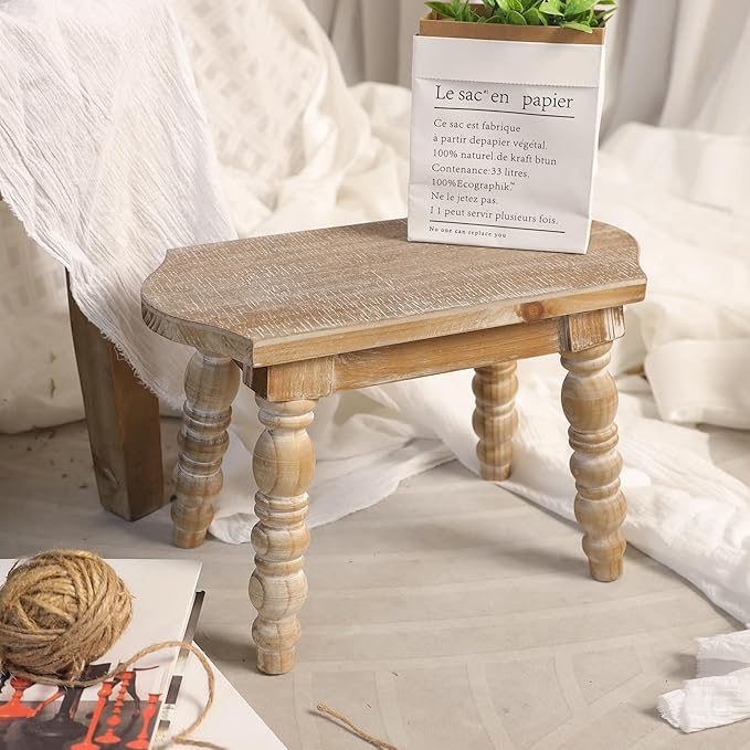 Wooden Bathroom Wood Foot Stool for Adults Kids, Bedside Step Planter Stool for Kitchen(Natural)