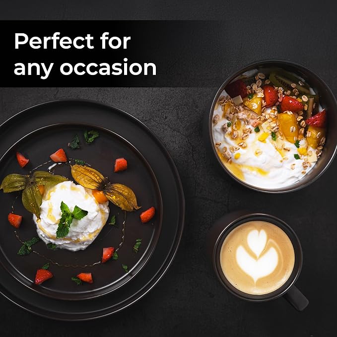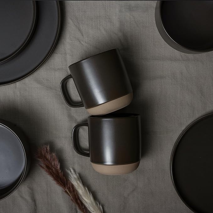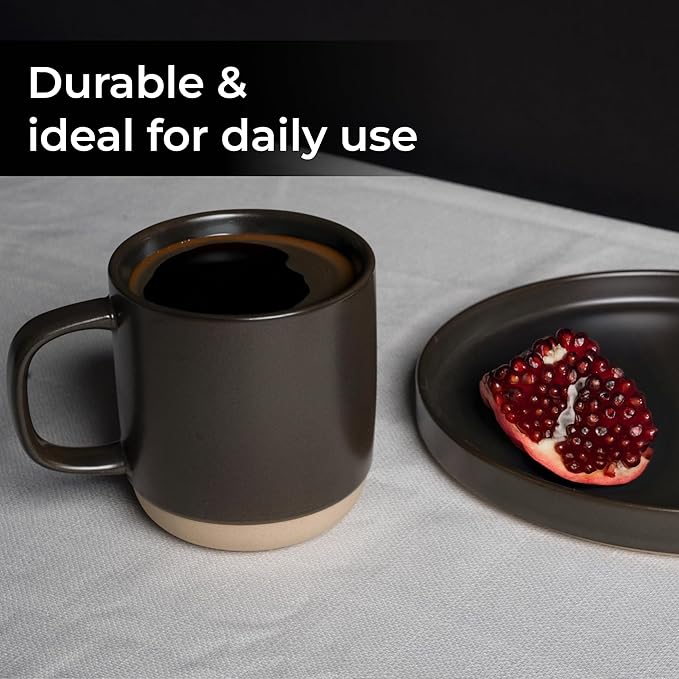 MIAMIO – Coffee Mugs Set of 4 / Ceramic Cups for Coffee (17.5 oz), Cappuccino, Latte Macchiato, Tea, Espresso/Dishwasher and Microwave Safe – Sierra Collection (Dark, Mugs (4x))