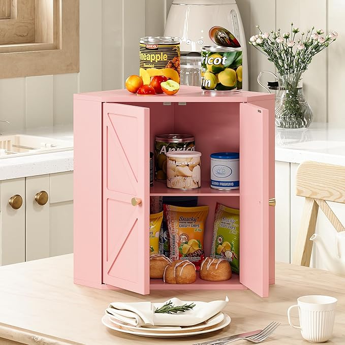 Corner Bread Box for Kitchen Counter Double Layer Bamboo Bread Storage Container Large Capacity Bread Storage Bin Farmhouse Breadbox Organizer (Pink)