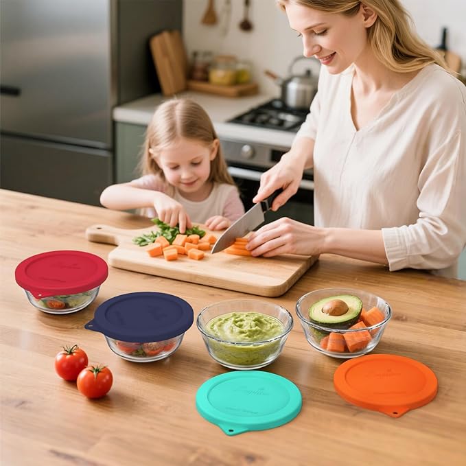 Sophico Silicone Replacement Lids for Pyrex and Anchor Hocking Glass Custard Cups 10oz, Round Silicone Cover for Food Storage (Container not Included)