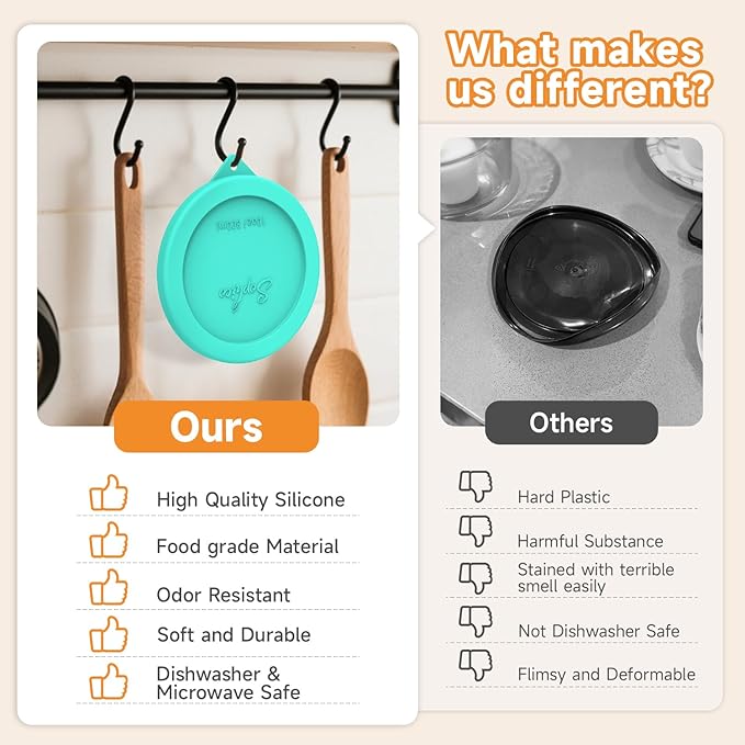 • RELIABLE SILICONE - Made from premium food grade silicone, which is odorless, non-toxic and BPA-Free. Compared with plastic lids, our silicone lids will not warp and crack over time of use.