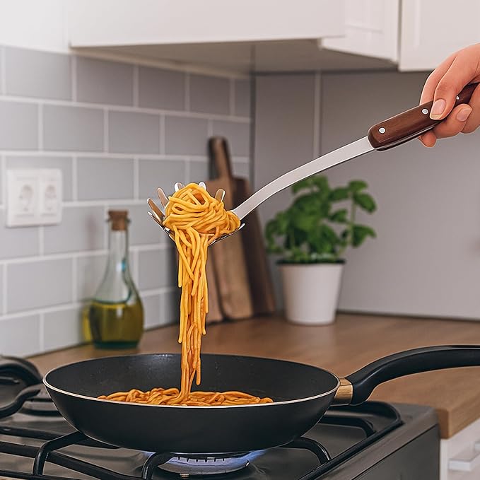 • Solid Kitchen Utensils: Wooden handle combined with polished mirror 304 stainless steel,combines sturdiness and aesthetics, the production process is more complicated, but it's worth it