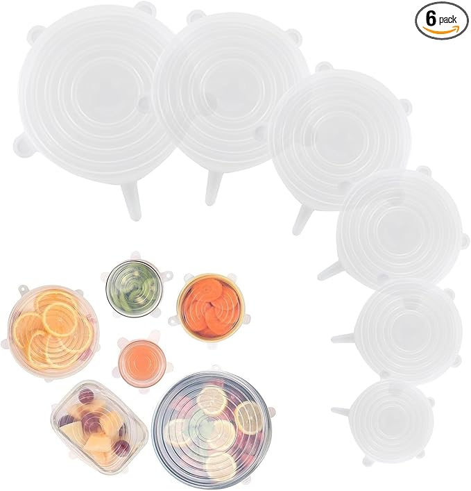Silicone Stretch Lids – 6 Pack Reusable Food Covers,Flexible Silicone for Bowls, Containers, Fruits – Airtight & Leakproof Seal for Kitchen Storage(transparent)