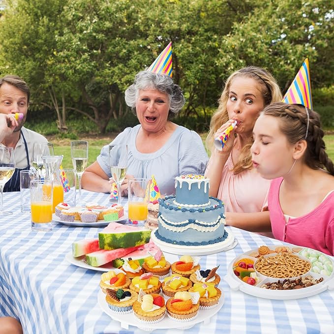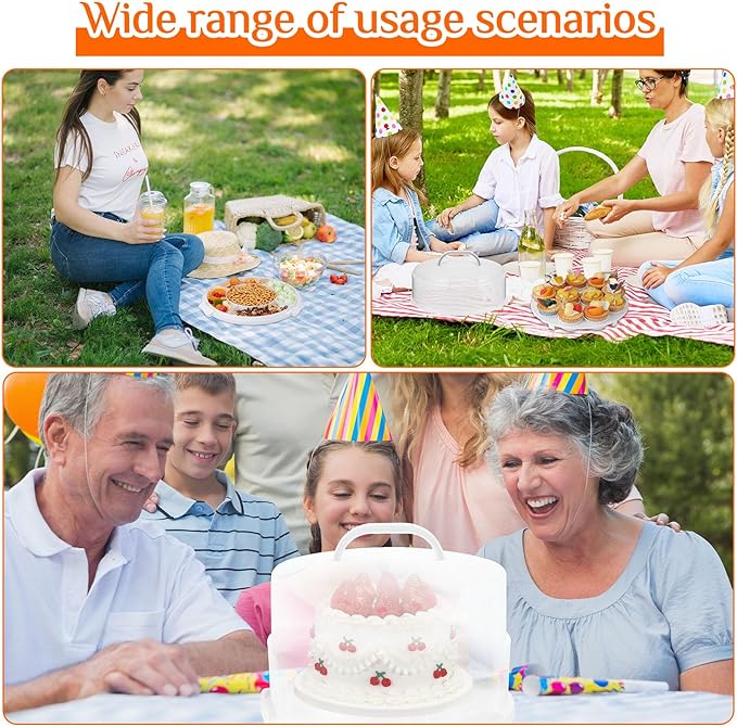 • Multipurpose Use: the plastic cake carrier is ideal for transporting and displaying cakes, pies, cupcakes, and more; You can also use the base for different kinds of snacks such as pizza, nuts, fruits, cookies, and crackers