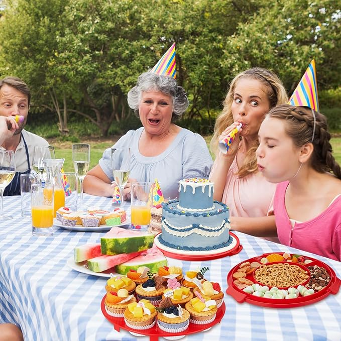 • Multipurpose Use: the plastic cake carrier is ideal for transporting and displaying cakes, pies, cupcakes, and more; You can also use the base for different kinds of snacks such as pizza, nuts, fruits, cookies, and crackers