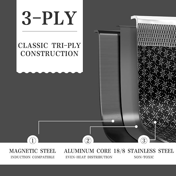 • Suitable for All Stoves: Works on all stovetops, including induction. The high-quality stainless steel and the aluminum core make it dishwasher-safe and oven-safe up to 550°F