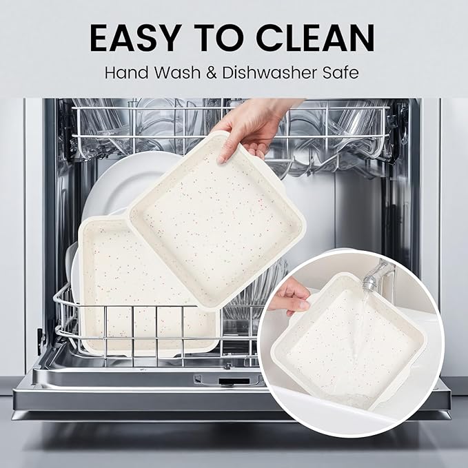 • Food-Safe & Durable Silicone: Crafted from 100% food-grade silicone, this rectangle pan is completely BPA-free. It withstands extreme temperatures (-104°F to 446°F) without warping, cracking, fading, or releasing odors. Safe for oven, microwave, freezer, and dishwasher use.