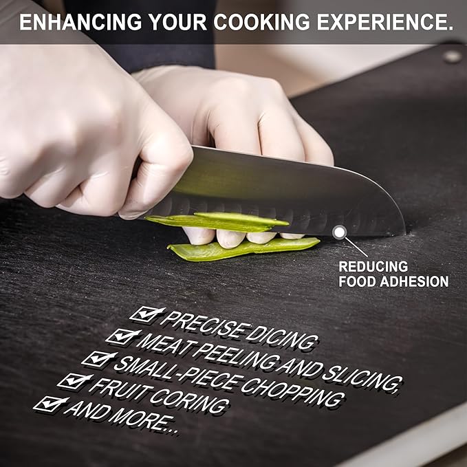 • FLUTED EDGE - It reduces food adhesion, make cutting more labor-saving, improve cutting accuracy, and ensure the integrity and aesthetic appearance of the cut food.