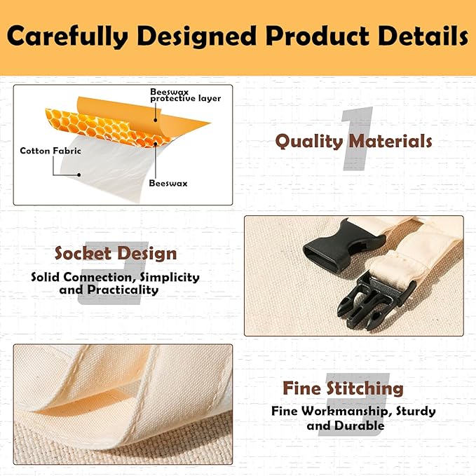 • Unique Design and Easy to Clean: The internal beeswax bag can be easily removed from the outer cotton bag, making it convenient to clean the outer cotton bag. The bees wax bread bag only needs to be wiped clean with cold water and air-dried