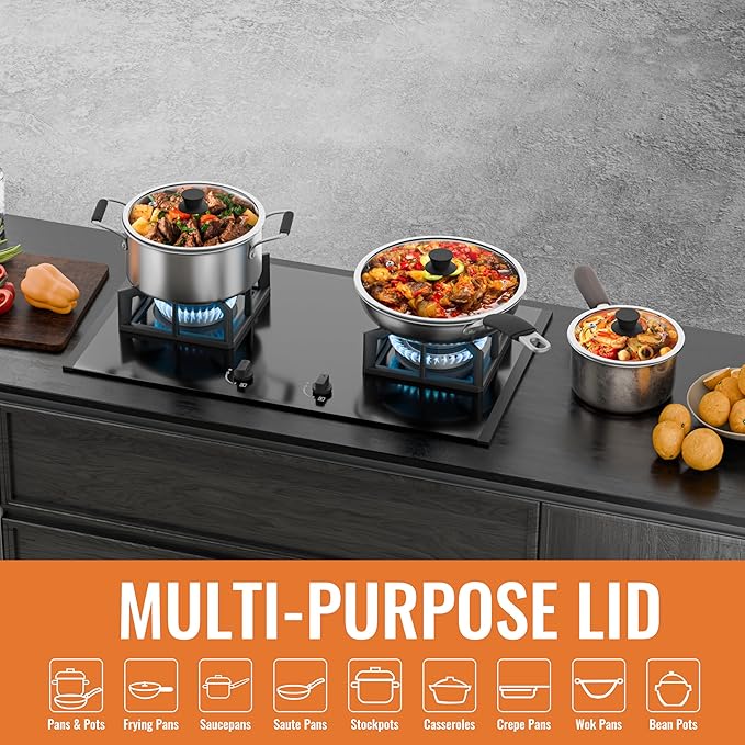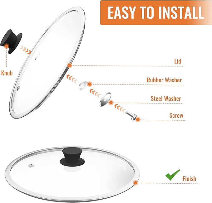 • STRONG TEMPERED GLASS: With premium high-definition tempered glass, this durable glass lid for pots and pans ensures even heat distribution and withstands high temperatures. Perfect for pots and pans, it offers a clear view of your cooking without lifting.