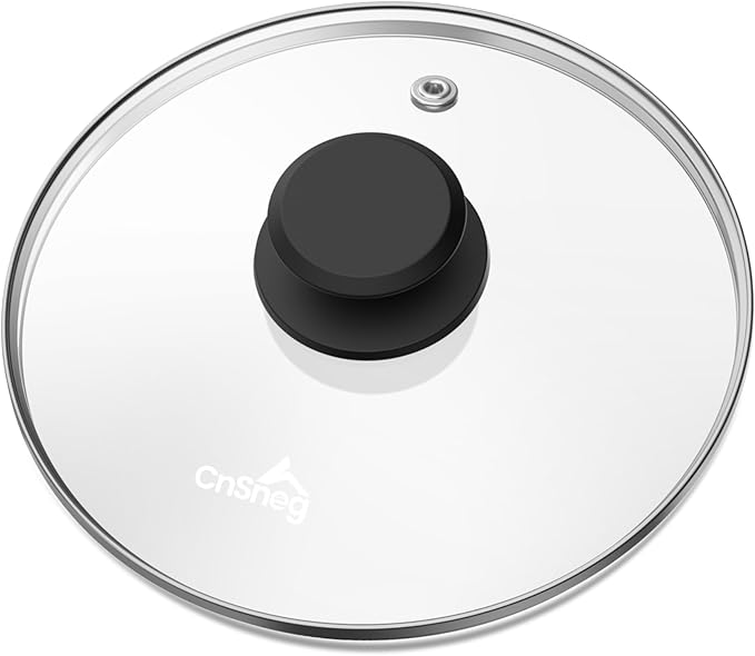 • 8 INCH PAN LIDS: Crafted with HD tempered glass, leak proof SS304 steam vent and heat resistant bakelite knob. The lid can withstand temperatures up to 450°F (230°C), safe for oven. The CnSneg glass lid fits most 8 inch diameter cookware of pots, cast iron skillets, wok, saucepan, and frying pans. Dishwasher safe for effortless cleaning.