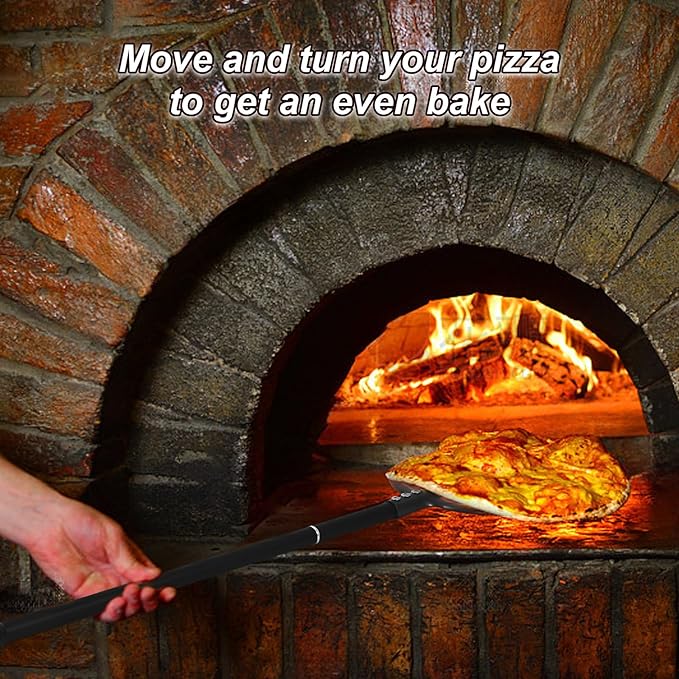 • EXTENDED HANDLE FOR SAFETY AND CONTROL: With a 38'' long handle, 47 inch overall, this pizza turning peel allows you to maintain a safe distance from the heat, protecting your hands from burns. The elongated handle also offers complete control over the baking process, allowing you to spin or remove the pizza with finesse.