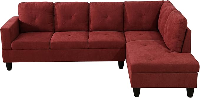 NicBex L Shaped Couch Sectional Couches for Living Room 2 Pieces Modern Sectional Sofa with Right Chaise Sectional Couch with Solid Frame for Living Room, Flannelette, Red