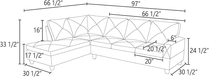 • Simple Assembly Process: The sofa is conveniently packaged in two separate boxes that may arrive at different times. Complete with all necessary tools and clear assembly instructions, you can easily put together the L-shaped sectional sofa without hassle.