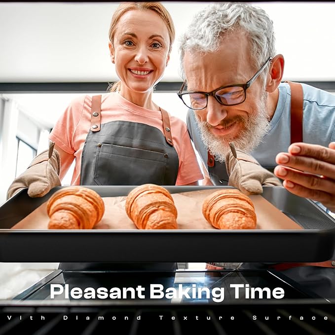 • Premium Ceramic Nonstick Coating: The baking set boasts a top-tier ceramic nonstick coating inside and out, complete with a stylish diamond pattern inside. Say goodbye to sticky cakes, cookies, and muffins with this innovative design