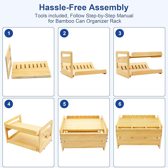 • 【Easy to Assemble with Complete Accessories】 The assembly process is simple and straightforward, complete with accessories, and can be installed in just 10 minutes. Keep your kitchen organized with our stackable bamboo canned food and pet food organizer.