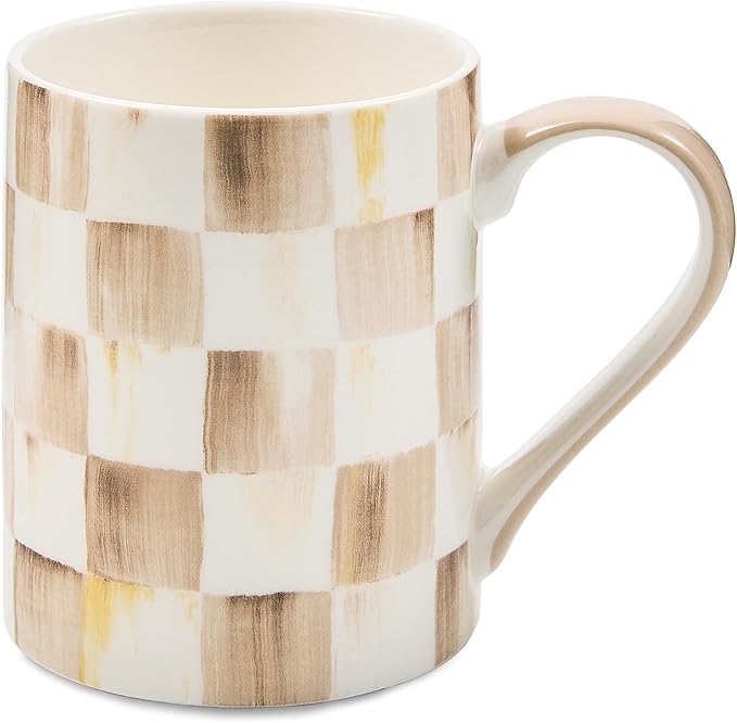 MACKENZIE-CHILDS Porcelain Mug, Tea and Coffee Mug, Brown-and-White Mocha Check