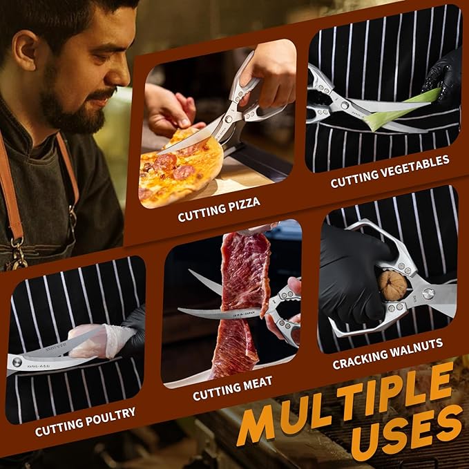 • 【Versatile Kitchen Tool】 These Huusk meat scissors heavy duty are not limited to chicken bones—they are perfect for cutting through a variety of tough foods such as fish bones, lamb bones, pork bones, and more. With sharp, heavy-duty blades, they are a versatile addition to any kitchen, making meal preparation faster and more efficient.