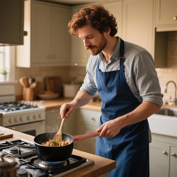 • 60-Second Heat, Flawless Cooking: The triple-layer aluminum base heats 30% faster than ordinary pans, spreading warmth evenly on induction, gas, electric, or halogen stoves. Simmer delicate hollandaise, melt chocolate, or boil milk without scorching. Perfect for multitasking in compact kitchens!