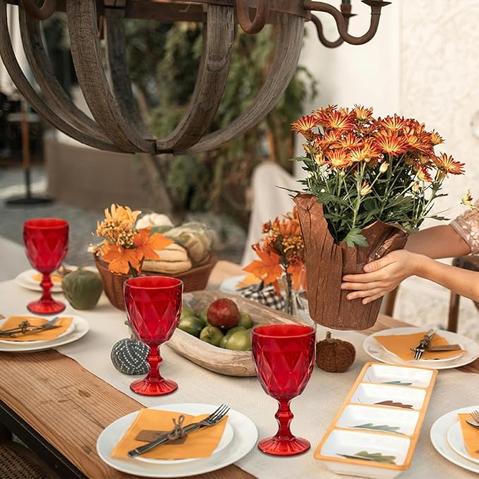12 Pcs Vintage Wine Glasses, 10 Ounce Colored Glass Water Goblets, Unique Embossed Pattern High Clear Stemmed Glassware Wedding Party Bar Glass Drinking Cups Fancy Wine Glasses Red Set of 12