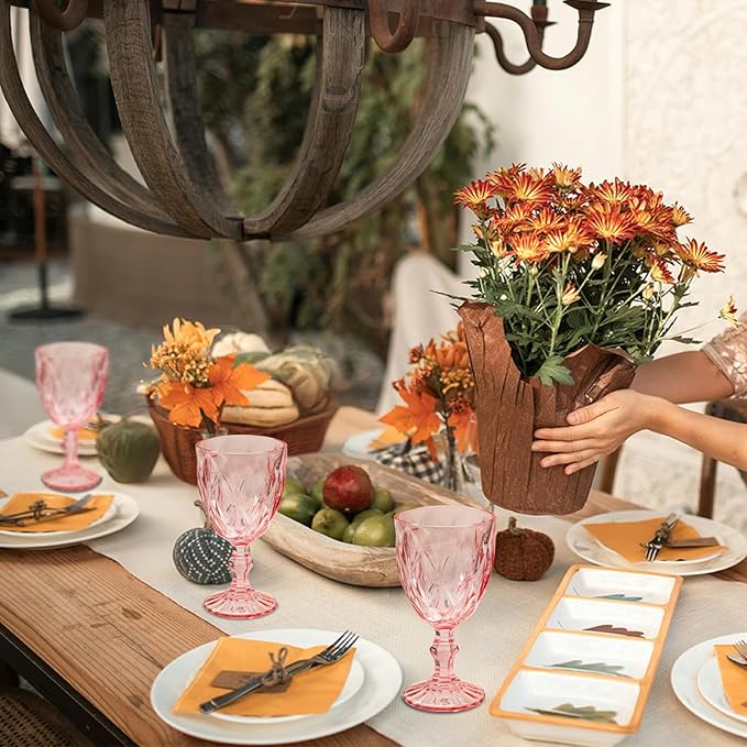 12 Pcs Vintage Wine Glasses, 10 Ounce Colored Glass Water Goblets, Unique Embossed Pattern High Clear Stemmed Glassware Wedding Party Bar Glass Drinking Cups Fancy Wine Glasses Pink Set of 12