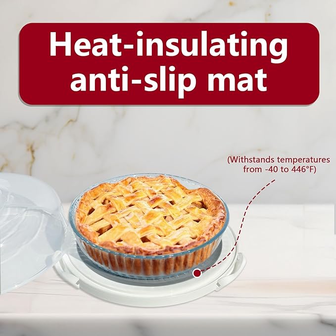 • PERFECT FUNCTIONALITY: Ideal for transporting delicious desserts, this two-piece pie tray with lid and handles securely holds pies, cupcakes, or pizzas, ensuring you arrive at your destination with fresh, undamaged treats.