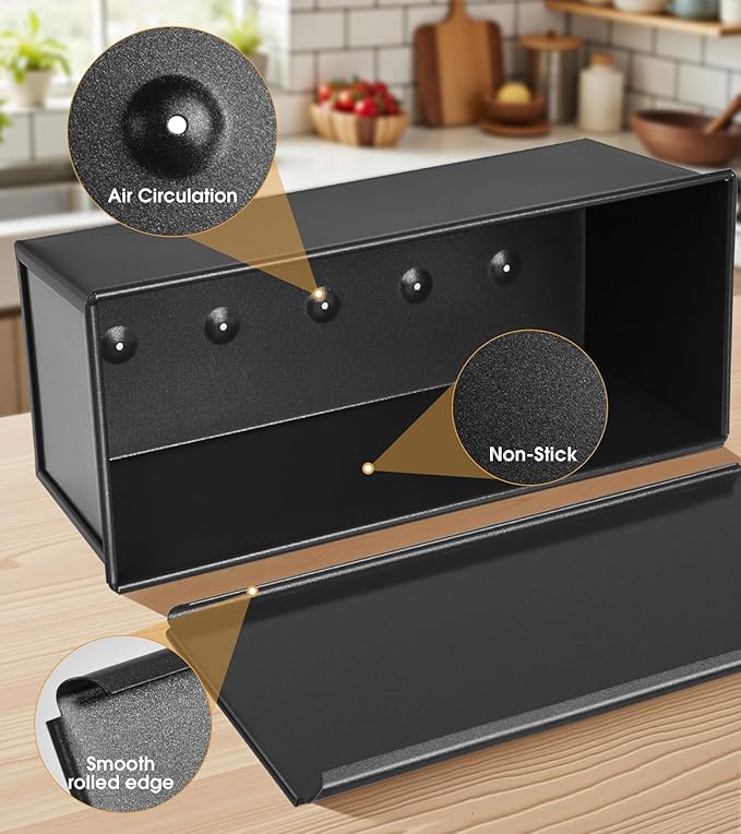 • Generous 2.2 lb Capacity & Smooth Rolled Edge Design The 13 × 5.5 × 4.7in top and 12.2 × 4.7× 4.7 in bottom deliver family-size baking performance,Bake homemade bread,Sourdough,Cinnamon Swirl, Cake and sandwich loaves with ease