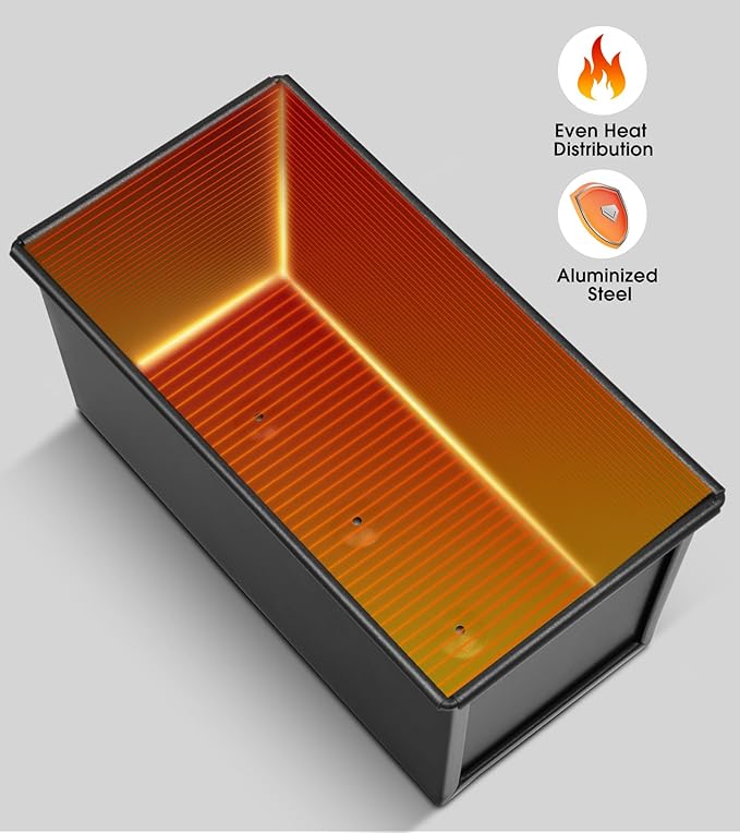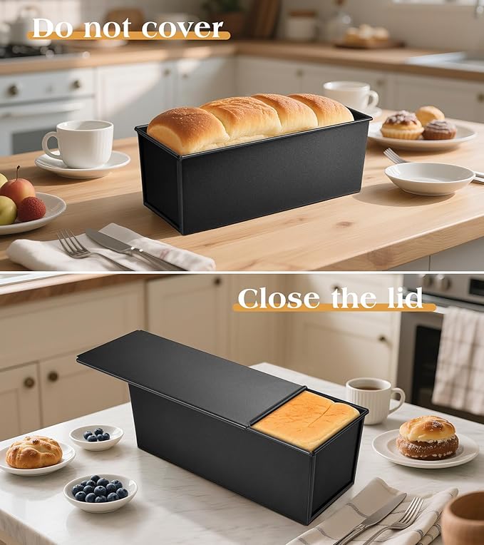Pullman Loaf Pan with Lid, 13×4 Inch Nonstick Aluminized Steel Bread Pan, 2.2 lb for Homemade Sandwich Bread
