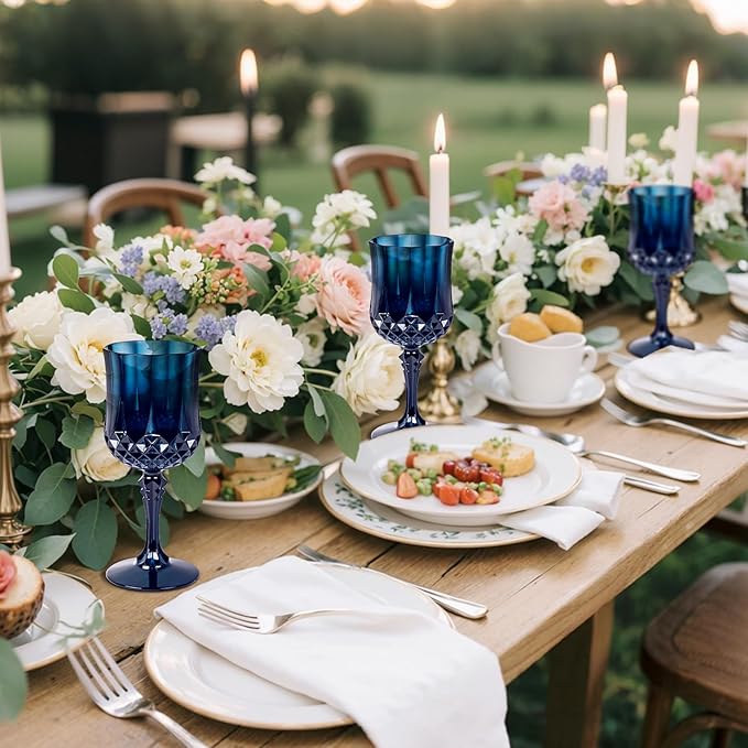 • Multi-occasion use: These 7 Oz blue plastic glasses drinking can be used in various occasions, such as entertainment events, weddings, bars, or casual gatherings. These plastic wine cups blend seamlessly with tableware. Plastic goblet glasses can not only serve as table decorations but also hold wine, beer, cocktails, juice, and so on.