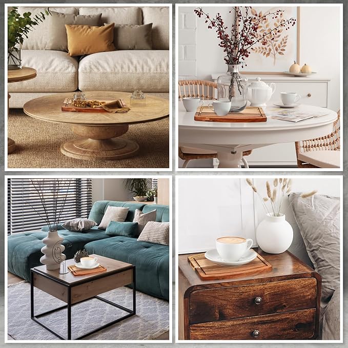 • Easy to Maintain: after use, you only need to wash these wood trays by hand or wipe them with a wet cloth, please do not soak them in the water or put them in the dishwasher; Beyond their practical features, the warm wooden color and beautiful grain of the acacia wood can complement the kitchen and table decor and serve as a kitchen accessory