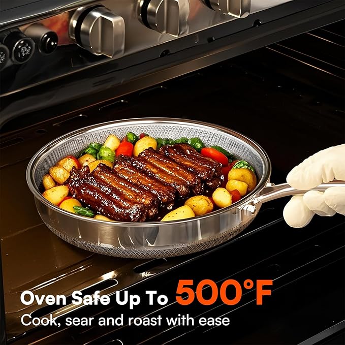 • Compatible with All Stovetops: Featuring a perfectly magnetized base, this stainless steel pan conducts heat quickly and evenly, making it suitable for gas, ceramic, electric, oven, and induction stovetops. making it a versatile addition to your cookware collection.