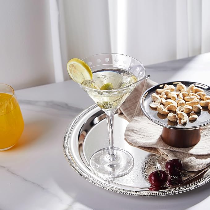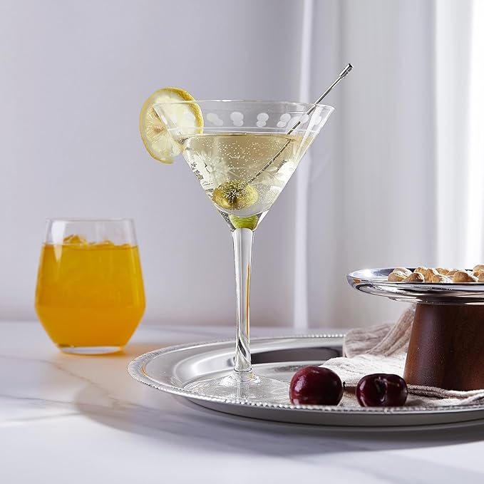 Royalrose Premium Delight Vintage Cocktail Glasses Set of 4, 9.6 oz – Hand-Blown with Etched Long Stem, Classic Glassware for Weddings, Dinners, and Holiday Gifting (Martini Glasses)