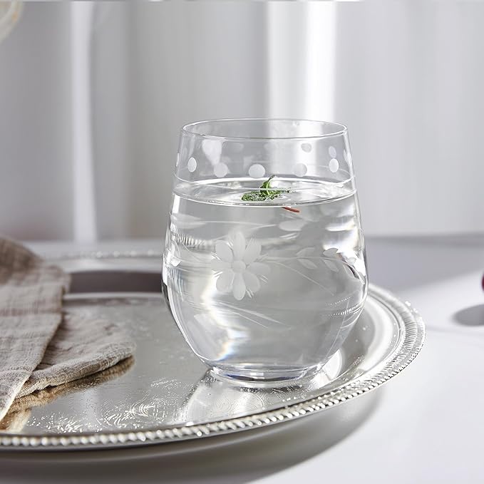 Royalrose Premium Delight Vintage Red Wine Glasses Set of 4, 15.7 oz – Hand-Blown with Etched, Classic Glassware for Weddings, Dinners, and Holiday Gifting (Stemless Wine Glasses)