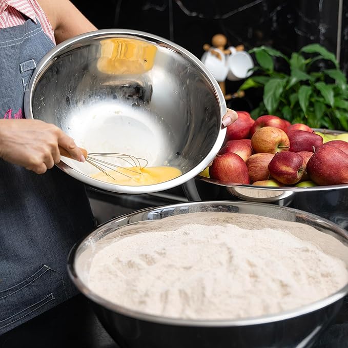 • Stainless-Steel Craftsmanship These deep mixing bowls are BPA free, food-grade safe, rust and corrosion resistant, and feature a smooth steel design easy on countertops and utensils.
