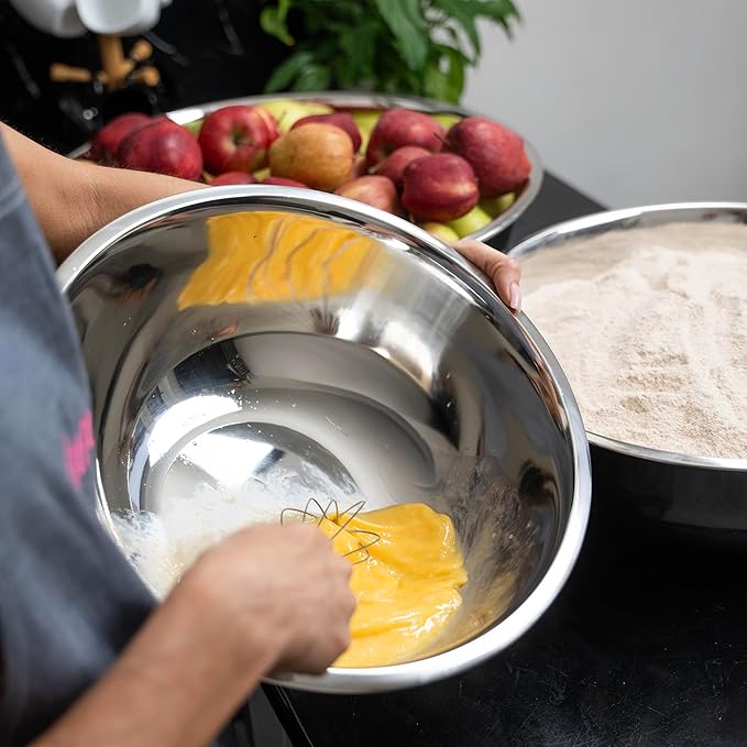 • Stainless-Steel Craftsmanship These deep mixing bowls are BPA free, food-grade safe, rust and corrosion resistant, and feature a smooth steel design easy on countertops and utensils.