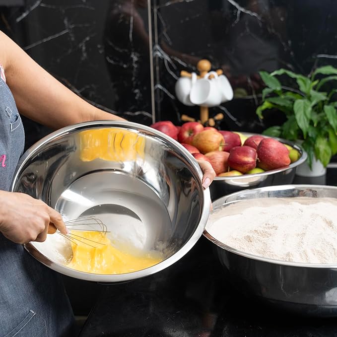 • Stainless-Steel Craftsmanship These deep mixing bowls are BPA free, food-grade safe, rust and corrosion resistant, and feature a smooth steel design easy on countertops and utensils.