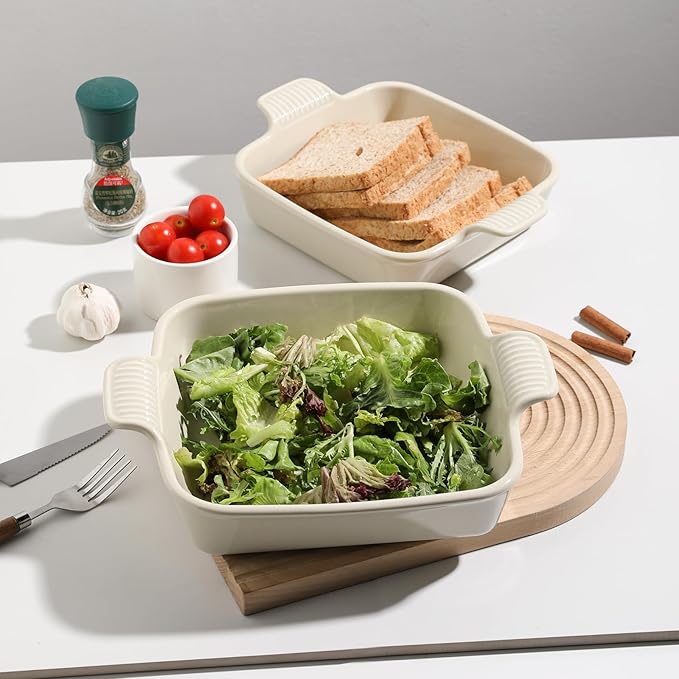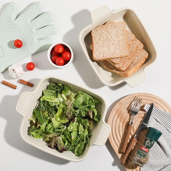 • 【Stylish Rectangular Baking Dish】The rectangular baking dish is equipped with a double handle design for easy food transport from the oven to the table. It is also a charming decoration in your kitchen and dining table which may impress your guests!
