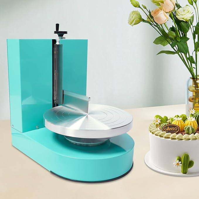 • 【Efficient Operation】This cake icing machine is equipped with a 200W pure copper motor with a maximum speed of 320rpm, and can be used with a sharp knife to quickly smooth the cream. The powerful power system is suitable for 4-12 inch cake embryos, the horizontal knife can be lifted 20 cm, and the vertical knife can be telescopically adjusted to cover a range of 17 cm, which can easily handle multi-layer cakes and complex shapes, and significantly improve efficiency.